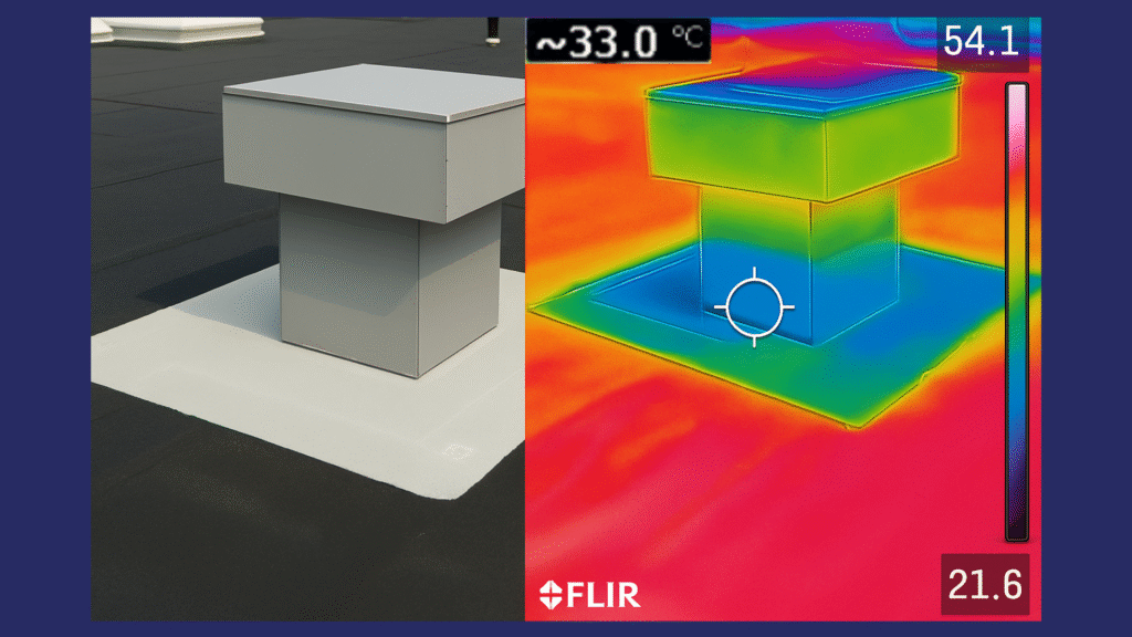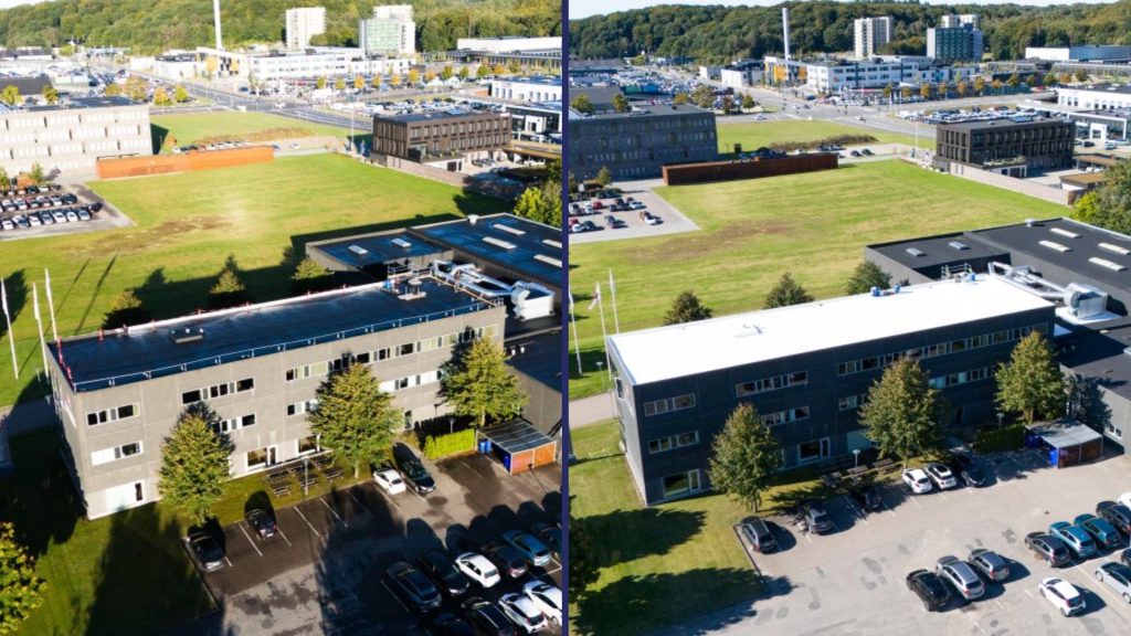 Især på mørke tagpaptage opstår der store varmeophobninger, hvilket presser indeklimaet og øger behovet for nedkøling. Med en reflekterende, hvid tagmembran reduceres tagets overfladetemperatur markant – og det kan mærkes på elregningen.